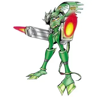 A Cyborg-type Digimon who was given the name of Fujin in the Oriental legends. It's a light fighter who fights in lightly movements and specializes in close combat. Its special move is using cutter-type arms which are the same as Justimon and cutting through the enemy, (Critical Arm). And blowing the enemy away with strong winds (Marut Cyclone).